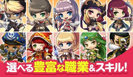 PC版メイプルストーリーでのキャラクター作成時に選べるのは「冒険家」や「シグナス騎士団」、「レジスタンス」などの枠組みだけで、職業はストーリーを進めて決めていく形となっています。それがなんとメイプルMではキャラクター作成時に「ダークナイト」や「ナイトロード」等の選択して始める仕様になってます。